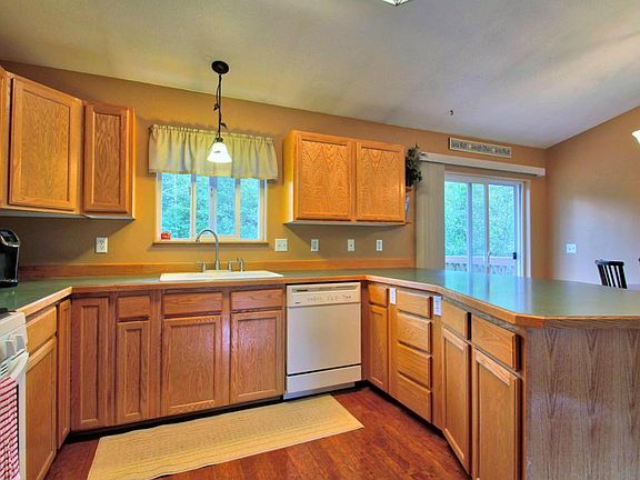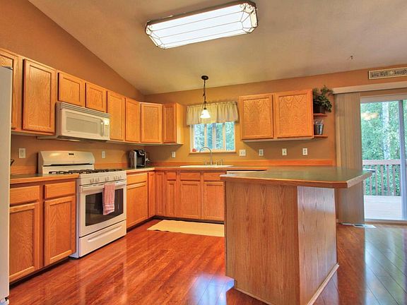 Superb location to schools, Palmer, Wasilla or commuting to ANC. Private yard with trees to buffer street and neighbors. Great layout with bedroom and full bath, family laundry rooms on main level, nice decks to back yard on both levels. Upstairs spacious kitchen, fireplace, bay window, master suite, two bedrooms and main bath. Nicely appointed and maintained home with privacy and great location.