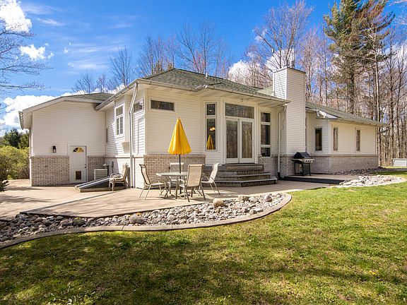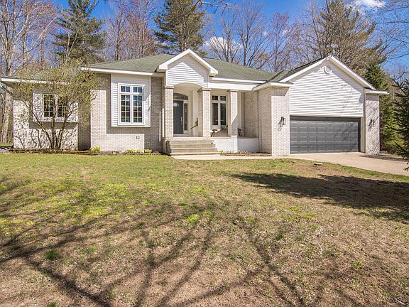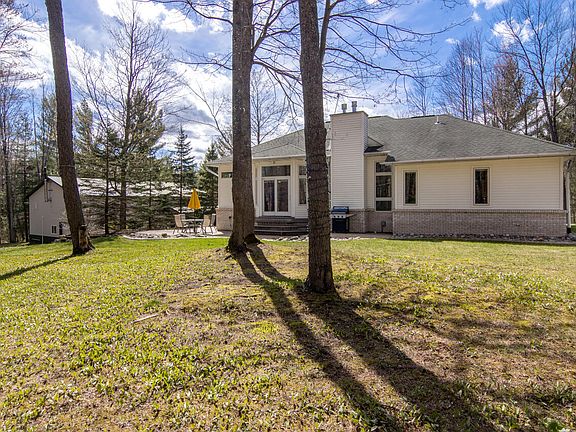 Welcome to your dream home! This spacious property boasts an open concept layout, perfect for modern living. The kitchen features stainless steel appliances, a center island, ample cabinets, and expansive counter space, ideal for cooking and entertaining. The main floor primary suite offers convenience with a luxurious bath featuring double sinks and a large walk-in closet. Enjoy the comfort of laminate flooring and the natural light streaming through Pella windows. The home also features a full wine bar area for hosting memorable gatherings. Step outside onto the covered porch and take in the serene views of the 10 wooded acres.Entertaining is a breeze in the lower level, complete with a large bar overlooking the TV area. Another covered porch extends the entertainment space outdoors. Additional features include an attached 2-car garage and a 36x56 heated pole barn with full bathroom, 14-foot door, and attached carport area, perfect for storing all your toys.Conveniently located near ATV trails, the Manistee River, and just a short drive from inland lakes, rivers, and Traverse City, this home offers the perfect blend of luxury and outdoor adventure. Schedule your tour today!