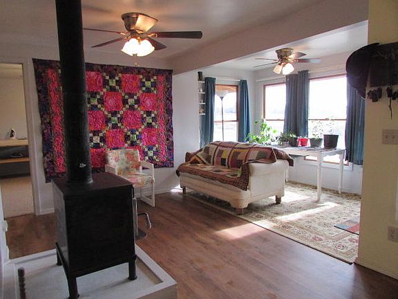 Earth berm house on over 8 acres of level land. Red barn is 24 x 40, attached carport 15 x 40. House has a metal roof installed in 2017, new 95% efficient furnace, updated kitchen, new hardwood laminate flooring, lots of storage through out. Nice size rooms and a free standing wood burning fireplace in the family room. Landscaping includes 5 apple trees and 1 pear tree.