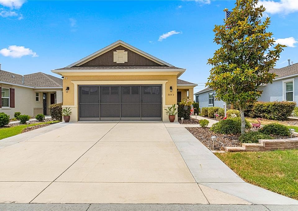 PRICED TO SELL >>> Beautiful Tamar Model Single Family SOLAR SMART Home with 2 Bedrooms, 2 Baths, Flex Room, & 2-Car Garage on a PRIVACY LOT in the Crescent Ridge 3 Neighborhood of On Top of the World, Premiere 55+ Gated Golf Community in SW Ocala FL. Thanks to the builder installed 13 panel SOLAR system the average monthly electric bill is $79 for the last twelve months. Natural gas provides cooking, heating, dryer, & water heater energy! The upgrades in this wi-fi SMART HOME enabled property includes custom window coverings throughout (plantation shutters, black out blinds, & solar shades on the lanai), neutral color LVP flooring throughout (no thresholds), CUSTOM opaque barn door at Flex Room, recessed LED lighting throughout, CUSTOM pantry, freshly painted interior, 30 amp RV plug in garage, designer high performance ceiling fans, 2023 refrigerator & dishwasher, “touch” kitchen faucet, rain gutters in front & back, overhead garage storage & wall shelves, laundry sink & extra cabinets, top hanging garage w/privacy screen, driveway expansion, custom landscaping with stacked stone wall in front and steel edging around entire home, custom elevated 10 x 30 paver patio in back with sitting wall, BRAND NEW Sun Pro 20 ft awning w/remote & wind sensor, and much more! Step inside into the foyer and notice the Flex Room immediately with barn door. The laundry room w/upgraded cabinets and garage entrance are to the left. Step into the Open Concept Kitchen-Great Room. Notice the beautiful quartz counters and tile backsplash in this gourmet kitchen with under cabinet lighting, 2-door custom pantry, upgraded appliances, and counter peninsula w/seating. The light and bright Great Room boasts a tray ceiling, recessed lighting, & 66” ceiling fan. Split bedroom plan with guest bedroom to left of kitchen. Guest/hall bath with tub & tile surround, quartz vanity top, comfort height toilet, & lots of light! The primary bedroom is in the back of the home for privacy with another 66” ceiling fan and black out shades. The massive walk-in closet has been upgraded with double hanging rods. The en suite bath has a LARGE step/roll in upgraded tiled shower with glass enclosure, double vanity w/quartz top, comfort height toilet, and linen closet. Step through the slider to the screened lanai w/ceiling fan, and out to the private elevated back 10 x 30 paver patio that runs the entire length of the home – perfect for entertaining! What an oasis with NO NEIGHBORS IN BACK! The 2-car garage with professional epoxy floor, laundry sink, overhead storage and drop-down attic steps provides tons of storage options. The monthly HOA fee includes DCM Basic Internet, curbside mail delivery and trash/recycling pickup, roof repair & maintenance, exterior painting every seven years, exterior maintenance and insurance, landscaping, curbside trash & recycling, 24/7 monitored gates and all the amenities that OTOW has to offer; three pools (2 outside & 1 inside & ANOTHER 1 under construction), two state of the art fitness centers, pickleball, billiards, archery range, corn hole, bocce ball, tennis, shuffleboard, horse shoes, remote control flying field and race cars, 175+ clubs, woodworking shop (extra fee), library, and much, much more! A golf cart community with access to three shopping centers. *** OWNER IS AGENT. Flagpole DOES NOT convey.