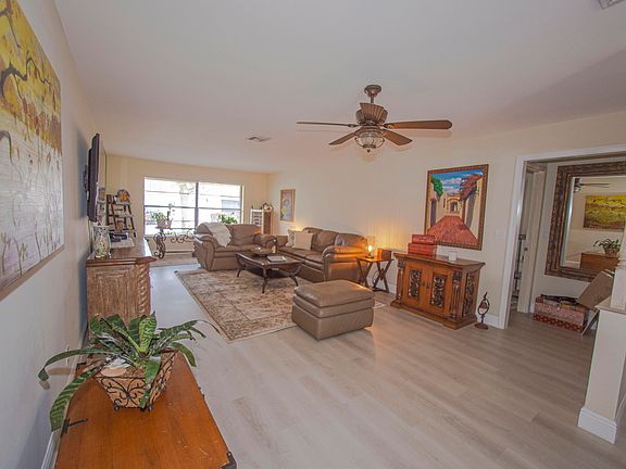 BEAUTIFUL & UPDATED MOVE-IN READY! LOCATED IN A VERY ACTIVE 55+ COMMUNITY Beautiful Wood laminate flooring.Ample living space with large bedrooms Home Office with pretty Garden Views & Brick Paver Patio area!Accordion Shutters for hurricane protection; with brand new impact glass doors in the back door. GREAT Location, Just miles from the Beach, Shopping, Restaurants & PBIA. just a short walk to the pool and clubhouse! Amenities include a clubhouse, Pool, Billiards, and Library. This home has been recently repainted on the exterior. HOA included building insurance, cable, water, and more. Bent Tree East offers an active community with a clubhouse, heated pool, Library, card, games, pool tables, and a lot of activities. Security and technology are provided with a RING video doorbell,