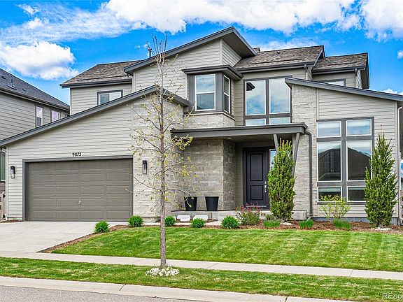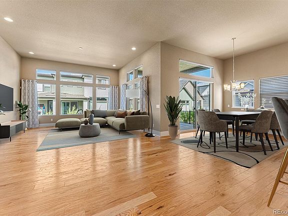 Last weekend on market. Bring a reasonable offer! Sterling Ranch Town Center in Providence Village across street from Living the Dream Tap House, Atlas Coffee, Primrose Pre-School, New Library (Coming Soon) and nightly food trucks. Main Floor Owner's Suite with custom floor-to-ceiling closet and attached laundry room. Low-maintenance patio style living with hardscape backyard. Spacious 3 car tandem garage that can fit your boat for neighboring Chatfield Reservoir. The elegant interior features a vaulted entry, 4" engineered wood floors throughout, & 12' main floor ceiling height, creating a grand and spacious feel. The formal office provides a perfect work-from-home environment with floor-to-ceiling windows. The euro, espresso cabinet kitchen with new Kitchen Aid appliances, induction cooktop, quartz countertops, along with the gas fireplace and giant walk-in pantry make this kitchen a chef's dream. Upstairs, there is a loft with 3 additional bedrooms & a full bathroom. The custom, permitted basement features a full bar with a wine fridge, future wine room, game room, workout area, 16' x 16' bedroom, full bathroom, 2 storage rooms, & a pre-wired home theater – perfect for entertaining guests. Negotiable Martin Logan Home Theater Components. The tech-savvy Smart home options include automated, remote Hunter Douglas blinds, nest thermostat, Lutron switches, Rachio Sprinkler, & 1 gig fiber internet. Free State Park Pass for your outdoor pleasures. The low-maintenance lot with xeriscaping and a delightful variety of lilacs includes a built-in Napolean gas grill, gas fire pit, and hardscape walkways. The newer roof has improved ventilation and ice/moisture barrier. Motivated Seller! Pictures are a mix of virtually rendered and staged.