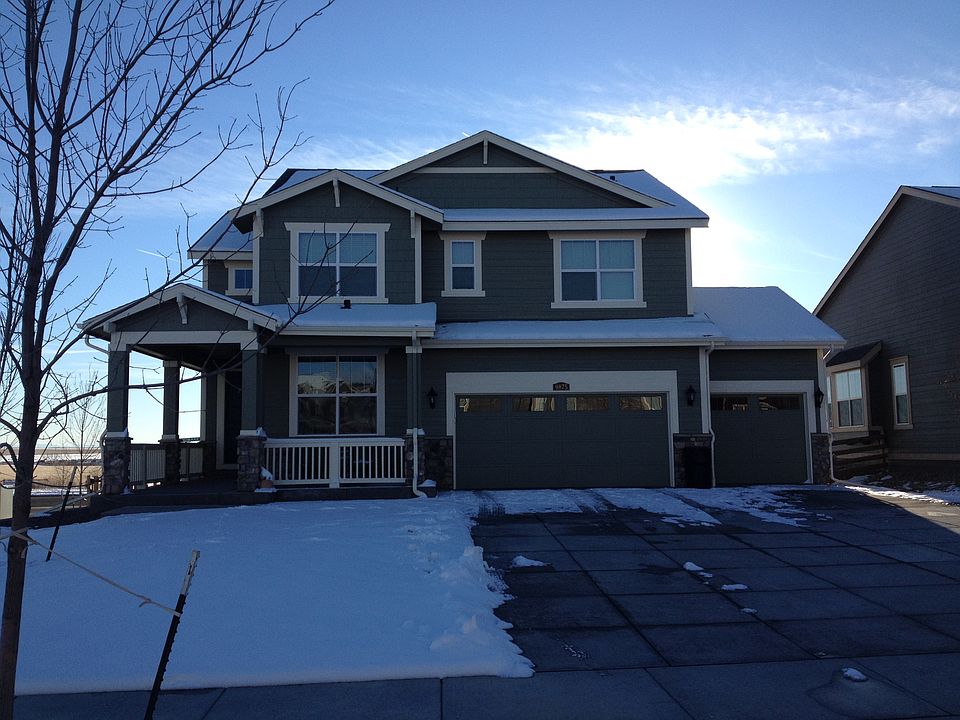 Amazing mountain views from the extended covered deck of the entire front range from pikes peak to longs peak. Reunion area home with beautiful sunsets over the mountains. 4 bedrooms and 3 full baths with one bed and one bath on main level. Beautiful wrap around front porch. Open floor plan on main level with large granite island. Stainless steel appliances.; 42 inch premium cherry kitchen cabinets; Gas Fireplace; Granite counters in master bath with tiled walk in shower and garden tub. Fenced yard on a premium corner lot with beautiful retaining wall and mountain granite stone. Large 3 car garage that is finished, storage shelves and insulated; Large loft area that serves as a second living area; Huge Master bedroom with pan ceiling; Tons of natural light;
