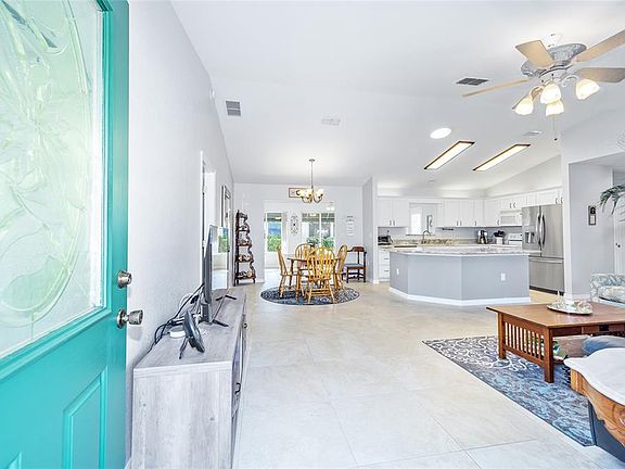 JUST LIKE NEW! Owners have installed a NEW ROOF 2019, NEW FLOORING THROUGHOUT 2019 (24 X 24), NEW WATER HEATER 2022, NEW INTERIOR DOORS 2022, NEW COMFORT HEIGHT COMMODES, KITCHEN CABINETS REFINISHED 2021, NEW GRANITE INSTALED 2021 and ALL NEW LANDSCAPE ROCK 2022. Make your way over to see this beautiful 2 bedroom, 2 bathroom split bedroom plan PLUS FAMILY Room (Enclosed Lanai) and LARGE Bird Caged Lanai. Front door has beveled glass. Open floor plan with cathedral ceilings, solar tube, newer Bosch dishwasher, Whirlpool SS French Door Refrigerator and the HVAC was replaced in 2015. Termite Bond. This beautiful home will not last long! Monthly HOAs only $158.00 which includes 24 hour security, guard gate, common area maintenance, trash pickup and all the amenities. Over 70 clubs, 3 pools, fitness center, massage therapist on property, baseball, preserve trails and so much more!