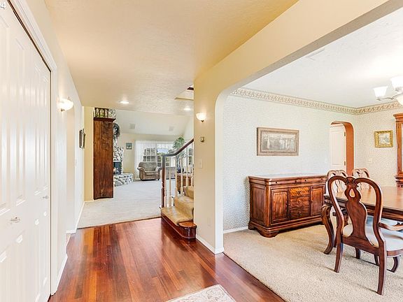 Charming and expansive custom-built home by the original owner in the Southview Tigard neighborhood. Enjoy this private street with no HOA. The large lot size gives a taste of the country in town in a prime location. The main floor features a primary bedroom with a walk-in closet and an ensuite bathroom with dual vanities, a soaking tub, and a walk-in shower. The living room boasts vaulted ceilings and a welcoming atmosphere with a gas cobblestone fireplace, seamlessly transitioning into the dining nook and kitchen, all adorned with beautiful Brazilian cherry hardwood floors. The windows overlook the peaceful and private backyard and deck. The main floor also includes a light and bright office/den with floor-to-ceiling built-ins and a formal dining area. Outside the kitchen is a private deck on the main level with beautiful territorial views, perfect for soaking in the sunlight. The spacious main floor laundry/utility room has ample storage and connects to the kitchen, back deck, and two-car garage. Upstairs, you'll find three bedrooms, two of which include cozy reading/desk nooks, and a dual vanity full bathroom that connects to one of the bedrooms.This three-level home is ideal for a multi-generational family or as a potential ADU opportunity. The finished daylight basement has a separate entrance and features a living room, an unconventional bedroom/bonus room, a full bathroom, and two walk-in storage spaces (34x17 and 4x14).The beautiful 0.62-acre yard is low maintenance and includes a robotic self-lawn mower pre-wired into the yard. This backyard oasis is a blank slate!New in 2017: Furnace, AC, Electronic Air Cleaner, Water Heater.