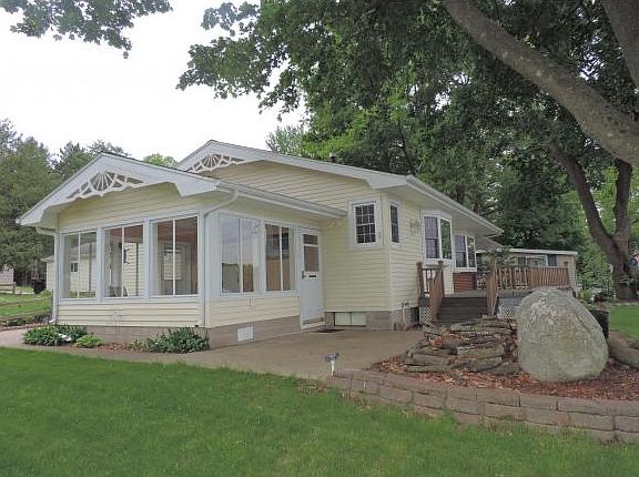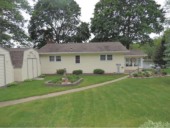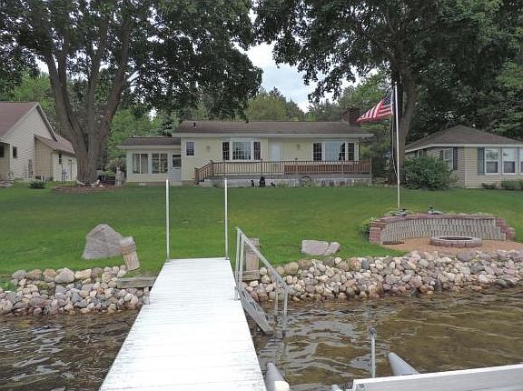 Waterfront retreat on White Lake! Well kept ranch style home features 2+ bedrooms, 1 bath, granite counter tops, fireplace, partially finished basement, detached garage and 2 storage sheds. Approx 80 feet of sandy frontage on this no-wake lake and is close to Kelly Lake, public land and the recreational trail system! Pontoon and paddle boat included!