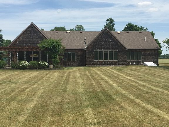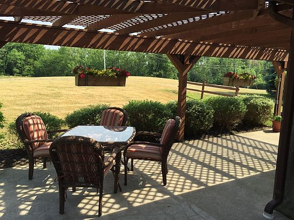 Peaceful country living at its best! This beautiful ranch features an oversized living room with beamed cathedral ceiling and built in entertainment center for the whole family to enjoy. Large windows give this home a light, bright and airy feeling. The kitchen features built-in cupboards. This home also has a walk-in pantry. Large sunroom with cathedral ceiling has sliders that lead to the beautiful pergola shaded patio. This property also features a 28' x 61" workshop with metal roof, wood burning stove, office and storage room perfect for working on projects or using for your business. All of this and more on a beautifully landscaped lot of 3.6 acres. Just waiting for you to move in! Convenient to the NYS Thruway and I-490.