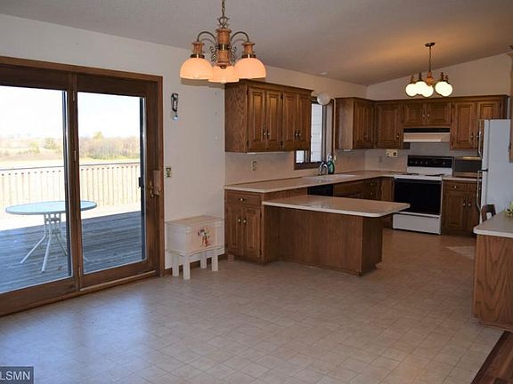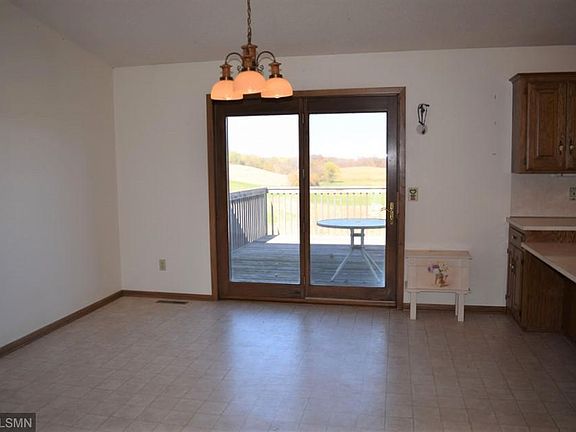Country Views! 1.33 acres with a 4 bedroom, 2 bath walk-out rambler with 3 bedrooms on the main level, Andersen Windows, vaulted ceiling, patio & a large deck with sweeping views. New mound system. Home needs TLC. Estate sale. As-Is Addendum Required.