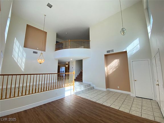 Welcome home! This 4 bedroom, 2.5 bath home is highly upgraded and features New quartz kitchen countertops, New luxury vinyl flooring, New two-tone paint,and New window treatments throughout. The impressive vaulted ceiling invites natural light and gives the home a spacious, inviting feel. The layout is versatile and seamless When you enter, you are greeted by a generous living room, perfect for entertaining or relaxing. A sunken family room, perfect for casual or formal gatherings. A brand-new refrigerator, brand-new stove, built-in microwave, and dishwasher are included! Washer and dryer hook-ups are included on the first floor. The bedrooms are upstairs, newly remodeled bathroom showers with a modern look. Conveniently located near schools, parks, shopping, dining, freeway access, the airport, the strip, Allegiant Stadium, move-in ready and waiting for you!