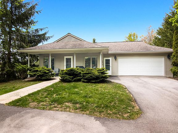 Welcome to this beautifully maintained standalone 3 bedroom, 2.5 bath site condo, perfectly positioned in the heart of Northern Michigan. With 1,104 square feet of finished living space and an additional 1,104 square foot unfinished basement, this home offers comfort, potential, and privacy- set apart from all the othe units in the development. Enjoy relaxing on the charming front porch, soaking in the hot tub on the covered back deck, and savoring the peaceful, landscaped yard - all without the upkeep, thanks to low-maintenance living covered by the HOA for just $140.00 per month. Inside, you'll love the luxury vinyl plank flooring, carpeted bedrooms, and cathedral ceilings that give the home an open, inviting feel. The heated garage adds year-round convenience, and the spacious basement is ready to be finished your way. Located in a central spot close to Traverse City, Turtle Creek Casino, Grand Traverse Resort, Elk Rapids, Torch Lake, Shanty Creek, and Boyne Mountain, this home puts you within reach of all the recreation, dining and adventure Northern Michigan has to offer. Whether you're looking for a peaceful retreat or a home base for four-season fun, this property has it all.