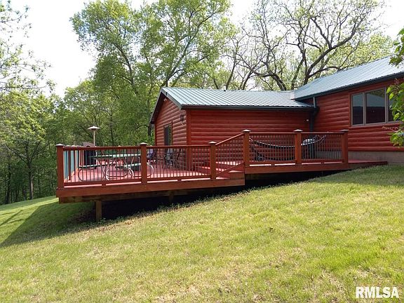 Enjoy the privacy of this wooded secluded acreage! Entirely remodeled 3 bedroom home with large wrap around deck overlooking over 5 acres of nature. Located just south of Edwards River. Newer 3 car insulated and finished garage. Log cabin finishing package with permanent metal roof. Another garage/shed and playhouse on property. House has hardwood flooring in living room, dining room and carpeting in bedrooms. Ceramic tiled floors in kitchen, laundry and main bathroom are all heated. Instant heat hot water system. Over 1400 square feet of wrap around deck that is perfect for a morning breakfast and a hammock with serenity and nature on all sides. Come see pride of ownership! NOTHING LEFT TO DO BUT RELAX. All appliances included too!