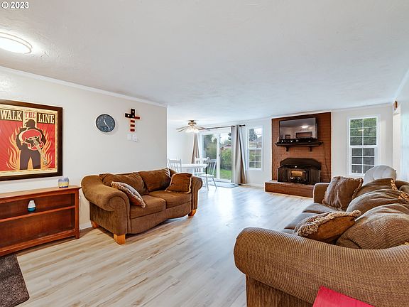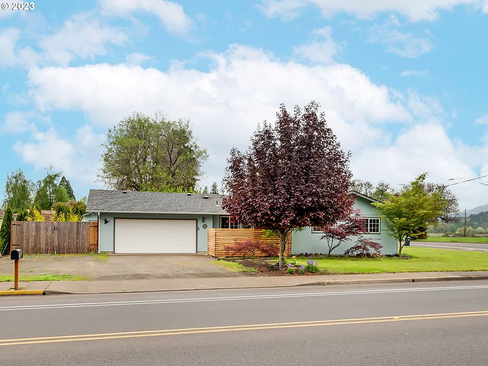 Open House from 12-2pm Saturday, 5/6. Sweet 1-level home on a corner lot in Thurston. This 3-bedroom 1.5 bath house has nice laminate floors throughout the living/dining room and kitchen. Kitchen has a built-in dishwasher and lovely tile backsplash. Master suite with private half bath and walk-in closet. Fully fenced backyard with patio and spacious storage shed. RV Parking pad. Shopping, schools, parks and bus line all close by! Make an appointment to see it today!