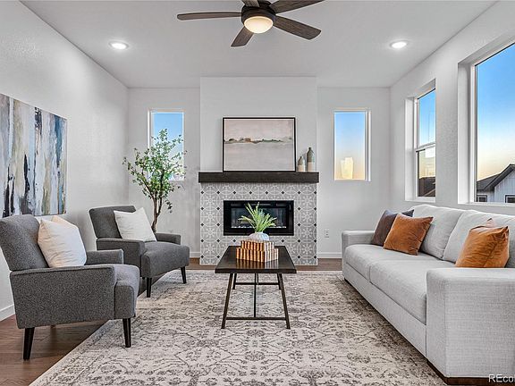 Looking for the perfect dream home in the sought-after Centennial 8 neighborhood? Look no further! This stunning, 4,024 sq ft Mountain Contemporary home sits high above, providing amazing views of the Rocky Mntns & Flatirons from both the upper floor and elevated back patio. With 6 spacious bedrooms, 4.5 luxurious baths, and a bright, open-concept design, this home is flooded with natural light from the abundant oversized single-hung windows and features a finished walkout basement for extra space. Designed by the renowned BSB Design firm, this masterpiece showcases lap siding, sleek roofing accents, and other striking features. Built by Homebound, a tech-enabled builder known for exceptional design services, this home is equipped with modern amenities including a 14-seer HVAC system, solid core doors, quartz countertops, a tankless water heater, smart thermostat, whole-house ventilation, owned solar panels, and an EV charger. As a bonus, Homebound offers a 1-2-10 Builders Warranty and an exclusive partnership with Yardzen for professional landscaping services. Don’t miss this unique opportunity to own a home that blends style, innovation, and luxury!