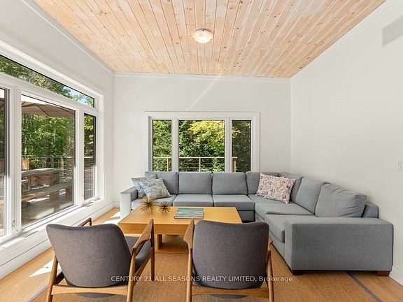 Experience Tranquil Luxury on Coe Island Lake Step into your own private sanctuary with this stunning 4-bedroom waterfront retreat nestled on prestigious Coe Island Lake. Designed to harmonize with its natural surroundings, this cottage combines contemporary elegance with the serenity of lakeside living. From the moment you enter, be greeted by the expansive open-concept layout, effortlessly connecting indoor living spaces with the beauty of the outdoors. Admire panoramic views through walls of glass while cozying up to the inviting natural stone fireplace, setting the stage for intimate gatherings or peaceful moments of reflection. Outside, your private dock beckons, providing direct access to the pristine waters of Coe Island Lake. Entertain on the spacious deck, where breathtaking lake views create the perfect backdrop for memorable gatherings with loved ones