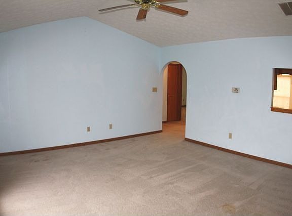 Available at closing! Open concept with split 3 bedroom floor plan giving each occupant maximum privacy. Private master bath in main bedroom includes large walk-in closet. Cathedral ceiling in great room plus pass through to kitchen and all appliances are included. Finished garage opens to separate laundry / mud room. Back yard is partial fenced and includes storage barn.