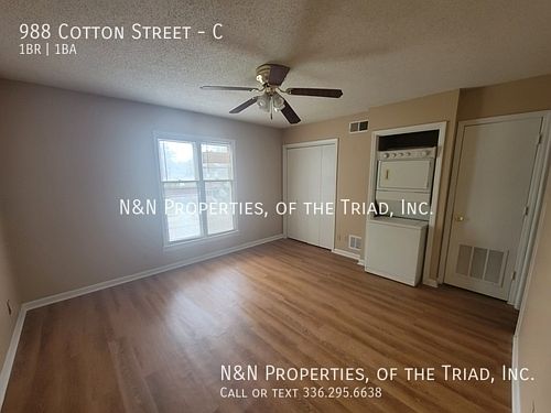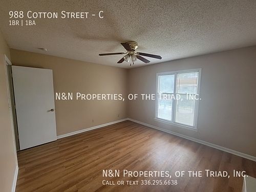 1 Bedroom, 1 Bath Garden Apartment (Upstairs) located downtown Winston Salem within walking distance of the BB&T Dash Baseball Park. Convenient to Interstate 40, On the edge of Westend, Downtown, Salem College, NC School of the Arts, Wake Forest Baptist Medical Center and only minutes away from Hanes Mall. 988 Cotton Street, Unit C Winston Salem NC 27101 Electric Heat, Central Air Conditioning, all Kitchen Appliances. Small Pets w/fees $895 per month (with Washer and Dryer Connections). com to see this property and other listings. If you're interested you can complete the application online also. Pest control, lawncare & other fees an additional $22.75/Month. Utilities (water, electricity, sewer) NOT included Links: Screening Questions?Animal Pet Questions?