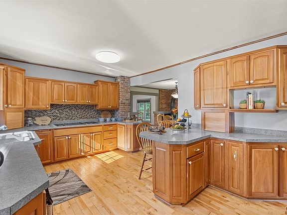 Birch hardwood flrsBuilt in corner hutchImpressive side entry sunroomCeramic floorWood stoveBreakfast barMeticulously manicured lot