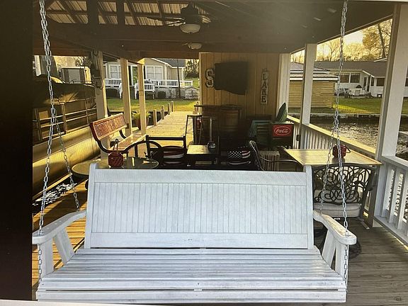 - Exterior features: 2 jet ski ramps and a boat sleeve w/lift, utility closet, TV, furniture and swing, Dock
