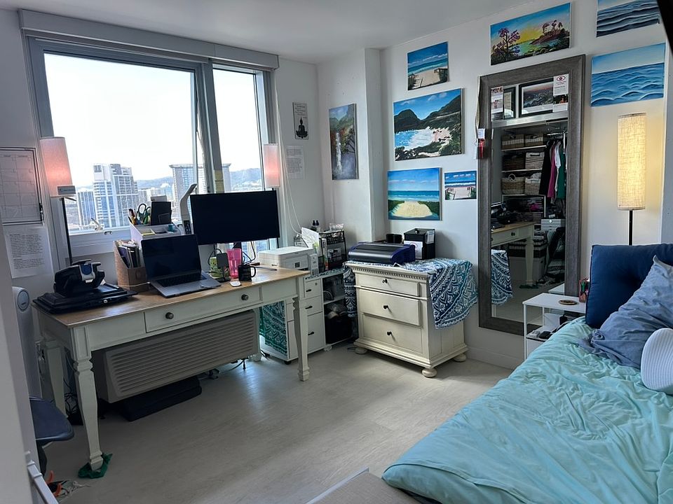 Two Private Rooms Available in a Peaceful High-Rise Condo Ke Kilohana, 34th Floor (Kaka ako, Honolulu) Looking for two clean, kind, and employed female roommates to join a calm, respectful home in the heart of Kaka ako. Ideal for travel nurses or working professionals who value peace, cleanliness, and good communication. Available Rooms Two private bedrooms opening between mid-September and October 1, 2025 Both rooms are light-filled with mountain and partial ocean views Each shares a clean, organized bathroom with one other person Air conditioning, in-unit washer/dryer, and Wi-Fi included One room currently includes a twin bed (can stay or be removed) Rent: $1,400/month + electric Utilities: Electric split three ways (~$60 $75/month); Wi-Fi included Lease Ends: Jan 1, 2026 (option to extend if it's a good fit) Building Amenities Ke Kilohana Modern, secure high-rise with 24/7 security and fob entry Fitness center + yoga studio Movie, karaoke + music rooms Co-working lounges Sky decks with panoramic views BBQ grills, party room, pet area, surfboard + bike storage About the Home This is a grounded, intentional space not a party household. Roommates value kindness, communication, and personal space. One current housemate is a visually impaired nonprofit founder who works from home and has a very sweet, quiet, well-trained dog. Location Perks Steps to Queen's, Straub, and Kapi olani hospitals Walkable to Whole Foods, Ward Village, and Ala Moana Easy freeway and transit access If this feels like a good fit, please send a quick intro and what you're looking for. Excited to connect and find the right match. Looking for someone to stay through the lease end date of January 1, with the option to continue if it's a good mutual fit. Rent is paid to the primary tenant, who sends one check to the landlords. Utilities (water, sewer, electricity) average $60 $70/month per person and are split evenly. High-speed fiber Wi-Fi is included in rent. Security deposit required. The building has a no-subletting clause, but temporary guests have stayed without issue. The apartment is in a secure, modern high-rise in Kaka ako. Roommates are respectful and clean, and a calm, retired service dog lives on the property. Female roommates only. No smoking inside the unit. Shared cleaning responsibility is expected in common areas. This is a great home for someone looking for a peaceful, well-located space with mature and kind housemates.