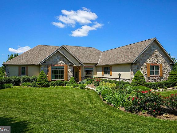 Welcome home to 988 Hillview Road where you can enjoy the great views and awesome sunsets! This beautiful custom built contemporary style Rancher sitting on 2.89 acres is sure to please! As you journey back the circular driveway your eyes will be drawn to the meticulously landscaped yard and peaceful surroundings! This wonderful home offers a plethora of upgrades to include; custom trim work, solid interior wood doors, skylights and high ceilings. As you enter the home you will be greeted by the beautiful foyer with honey oak hardwood flooring, 12 ceiling and an antique chandelier. The chef in the family will truly appreciate the gourmet kitchen featuring corian counter tops, wet bar, cherry cabinetry, breakfast bar, French doors leading out to the deck and all appliances. Located directly off of the kitchen you will find the spacious family room highlighted by a gas fireplace. Separate dining room with venetian plaster polished marble walls and a large living room with 3 piece crown molding and large window overlooking the front yard. At the end of a long day enjoy retiring to the relaxing master bedroom with French doors leading in to the sun room and a luxury master bath with double vanity, jacuzzi tub, glass enclosed tile shower and large 17 x 8 walk in closet. Three additional nice sized bedrooms can also be found on the main level along with a full bath, laundry room and guest bath. The beautiful 18 x 11 sun room with 14 stained cathedral wood ceiling is a great place to relax and unwind. The lower level offers a great opportunity for in-law quarters with separate entrance, 2 nice sized bedrooms, family room with floor to ceiling gas fireplace, full bath and a fully equipped kitchen with dining area, breakfast bar and appliances. Just in time for summer, enjoy dining out on the 16 x 8 Trex deck with pergola or on the expansive paver patio with pergola. Gather your family and friends around the fire pit to enjoy some delicious smores on those long summer evening. Conveniently located to Route 30, restaurants and shopping. Schedule your private tour today to check out the great views and wonderful amenities this home has to offer.