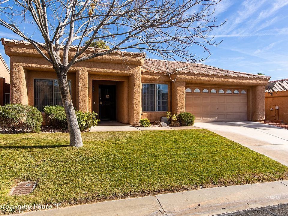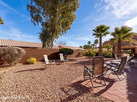 This home is located in Copper Bluffs, a gated single family community north of I-15. The home is tucked away in the far end of the community and is surrounded by towering Palm trees and natural desert bluffs. The partial mountain view is gorgeous and the eastern orientation is ideal for year round use of the outdoors. The extended brick patio allows ample room for outdoor furniture. The backyard is secluded with a privacy wall and the desert landscaping is low maintenance. The home is being sold FULLY FURNISHED making it the perfect primary residence or vacation getaway. The ceilings are vaulted and the paint tones are neutral. The great room and master bedroom both have sliding glass doors to the back patio. The den/office can also be used as a third bedroom. The community is within walking distance to the renowned Arnold Palmer designed Oasis Golf Course and two restaurants, The Redd Room and Oasis Grill Room and Bar. The moderate monthly HOA fees include access to the adjacent Mesquite Vistas swimming pool, spa, tennis courts and fitness facility.