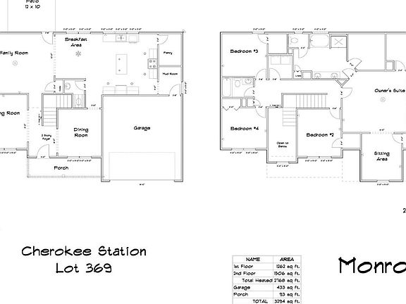Monroe plan in Cherokee Station! Stunning 4 bedrooms, 2.5 bath home with impressive two-story foyer entryway. The formal dining & living room flank the foyer & staircase. Moving further into the home, the family room with fireplace sits open to the kitchen & breakfast area. Step outside onto the patio to enjoy your backyard! In the kitchen, find a walk-in pantry, large island & quartz counters along the perimeter & island. Move through the kitchen through the mudroom to access the two-car garage. Upstairs find the laundry room, hall bath with quartz counters, three bedrooms & the luxurious master suite. The master suite boasts a large sitting room off the main bedroom, two walk-in closets & a private bath. Within the private bath are a dual vanity with quartz vanity counter, soaking tub & separat