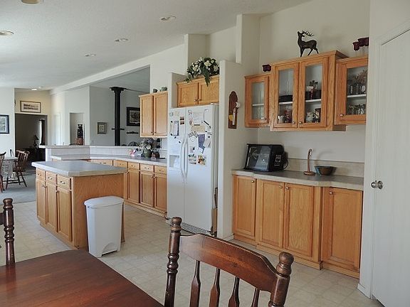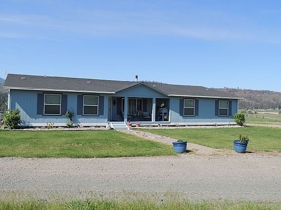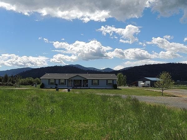Beautiful setting with expansive Mountain views! Well maintained 3 bedroom 2 bath Triple wide on 9.75 acres with a 60X40 tandem shop, 14' doors and attached 40x20 lean-to. Huge Master suite with jetted tub. Gourmet kitchen with extensive counter space, gas range, island and eating bar. Large living room with a Wood stove, open floor plan and an additional family room with a wet bar. Great well, fenced pastures, garden area with new fruit trees and a waterfall fish pond. The shop has 2 insulated rooms and a