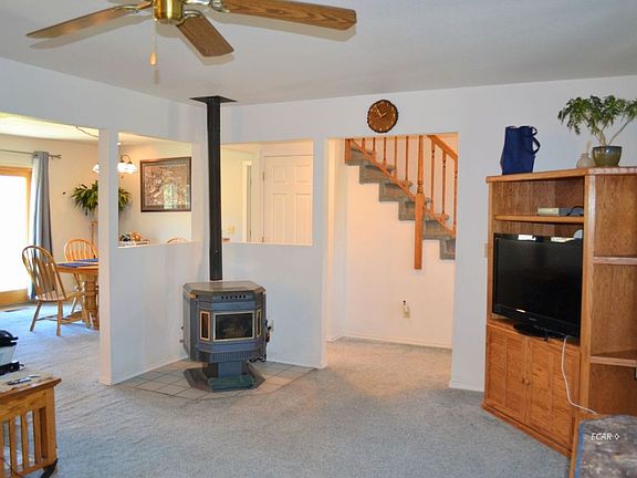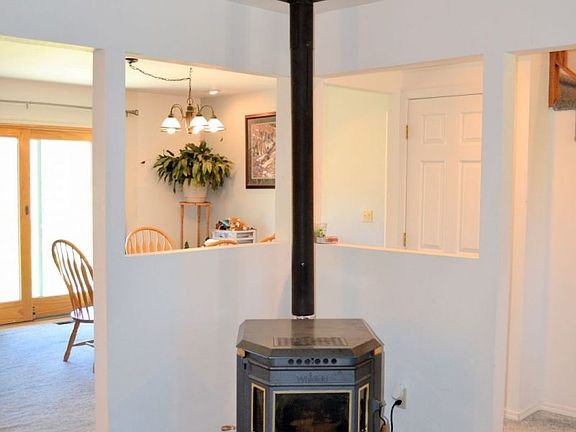 - Interior Features: Vaulted Ceilings, Pellet Stove, Ceiling Fan(s), Blinds