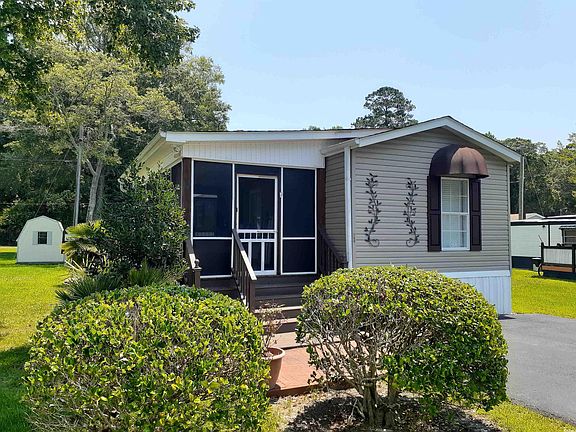 This adorable two bedrooms, two baths manufactured home with split bedroom floor plan is ready to move in! The upgrades include brand new dishwasher, fresh paint, new ceiling fans in all rooms, crown molding throughout and bathroom improvements! As you walk in through the entrance door, on the north side, the specious 35"x10" screened porch with lots of privacy will welcome you. This screened porch was built with Six by Six inch wooden posts that provides added structural stability and storm protection. Then as you walk thru the light and bright living room you will reach the dining area and an open kitchen will be on your left. The Master bathroom has a large garden tub and a separate shower with seats. This home has a nice size laundry room with washer and dryer included. There is a door off laundry room which opens up to a small porch and a stairway on the side of the building. The second bedroom is in front of the house and there is a full bathroom on the hallway! The outside storage (shed) has a ramp access and electricity. Once you move in, you will be close to Historical   downtown Myrtle Beach plus nearby named restaurants, entertainments and short distance to the Beach! Wow!