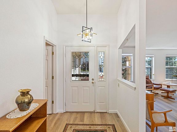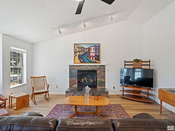 Single Story, Mid-Century Modern Style cozy home with lovely views of the mountains. This home has wonderful Luxury Vinyl Plank flooring and new carpet in the bedrooms as well as many new light fixtures. This home has a great flow for living or entertaining. Enjoy sitting on the back deck or entertaining friends with great views. Xeriscaped landscaping allows you to spend your time on your hobbies or with friends. On colder evenings, enjoy the gas fireplace in the living room with comfortable high ceilings., This home has great access to the outdoors with Lake Tahoe just up the mountain. Plus, enjoy quick access to local communities of Carson City as well as Minden and Gardnerville among others.