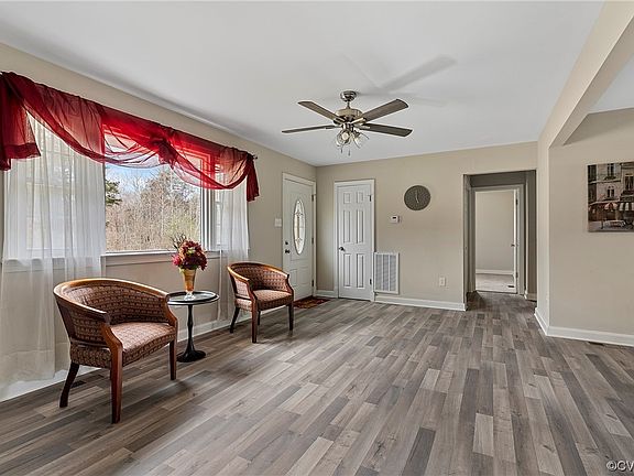 An oversized primary bedroom offers the perfect sanctuary, complete with a private entry to the wrap-around porch, a walk-in closet, and a luxurious private bathroom featuring a tiled shower and raised vanity with granite countertop. Two additional bedrooms, each with new carpeting (bedroom #2 boasting a walk-in closet and ceiling fan), provide ample space for rest and relaxation. Additional highlights include a full tiled bathroom, a convenient laundry room, and a pull-down attic for extra storage. Step out onto the back porch from the kitchen door and unwind amidst the serene surroundings. The porch wraps around to the entrance of the primary bedroom, offering seamless indoor-outdoor living. Outside, a carport and a detached storage shed provide added convenience and functionality. Conveniently located equidistant from Charlottesville and Richmond, with easy access to a major highway, this home offers the perfect balance of tranquility and accessibility.