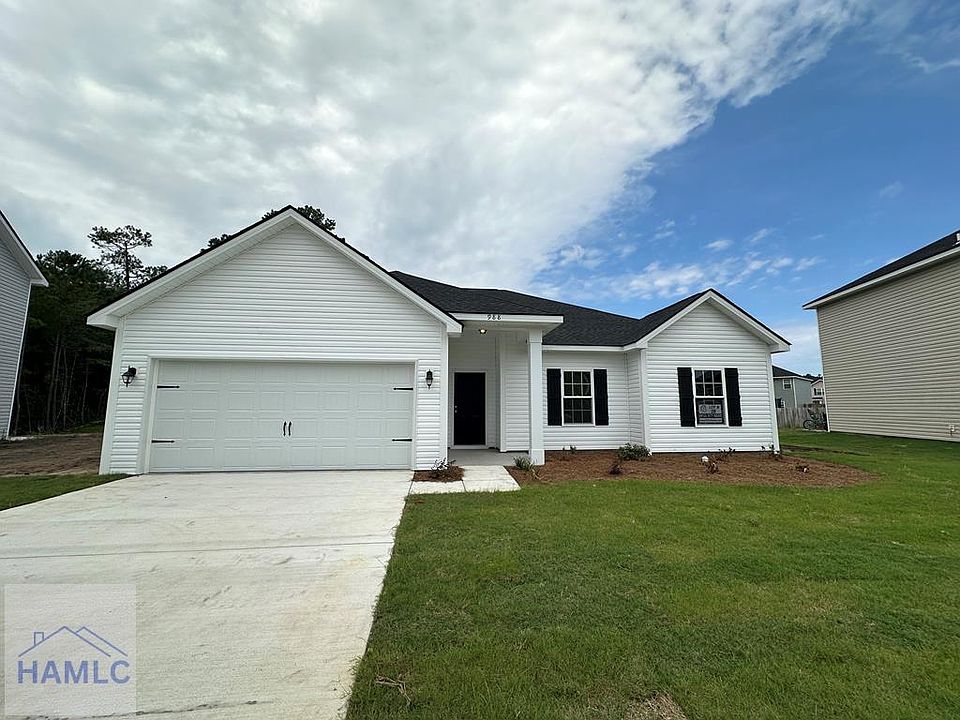 The Jackson plan located in Tranquil South a spacious ranch-style home design. This residence meets all your needs on a single level, featuring four bedrooms and two bathrooms. The property boasts a large family room with a warm electric fireplace and a view of the covered back patio, perfect for unwinding after a long day. The contemporary kitchen includes a roomy island and lovely QUARTZ tops- ideal for entertaining guests. For added privacy, the master suite and guest rooms are located on the opposite side of the house. This layout is crafted to create special memories with loved ones. Artistic renderings are for informational purposes only. Actual floor plans, features and inclusions may vary.