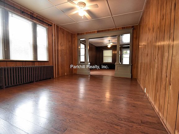 Really clean 3 bedroom 1 bath brick twin on a quiet street. Downstairs has open living room and dining room along with a large eat in kitchen and mud room/laundry in the rear. Upstairs has 3 bedrooms and 1 full bath. Attic storage. This home comes with one garage bay in an open 2 car garage. Covered front porch and fenced in rear yard area which includes a shed. Home includes sewer and trash. Tenant responsible for oil heat, water, electric. This home will accept 1 small dog UNDER 30 lbs., no vicious breeds. There will be NO exceptions to this pet policy - please do not ask. NO cats will be considered. All occupants 18+ must apply - we require proof of income, a good credit history and check any rental history you may have. Maximum occupancy is 2 people per bedroom. Owner pays trash and sewer.