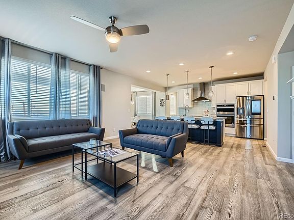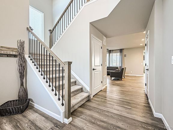 The outdoor space is a true highlight, with a large concrete patio, lighting, professional landscape design, water-wise plants with smart irrigation, an in-ground trampoline, and a fixed basketball hoop perfect for summer BBQs and gatherings. Relax by the in-ground gas fire pit or on the covered porch admiring the cotton candy Colorado sunsets. Your pets will enjoy access to their fully fenced dog run via a built-in doggy door or access to the entire yard which too is fully fenced. The 4-car garage provides ample space for large trucks, SUVs, lifts, and storage, while the 240V outlet makes it easy to power your RV or other heavy-duty equipment. For those with a passion for homesteading, you’ll appreciate the ready-to-use chicken coop, perfect for raising your own chickens! This subdivision allows outbuildings and horses. The sellers can provide outbuilding engineering plans previously approved by the HOA.