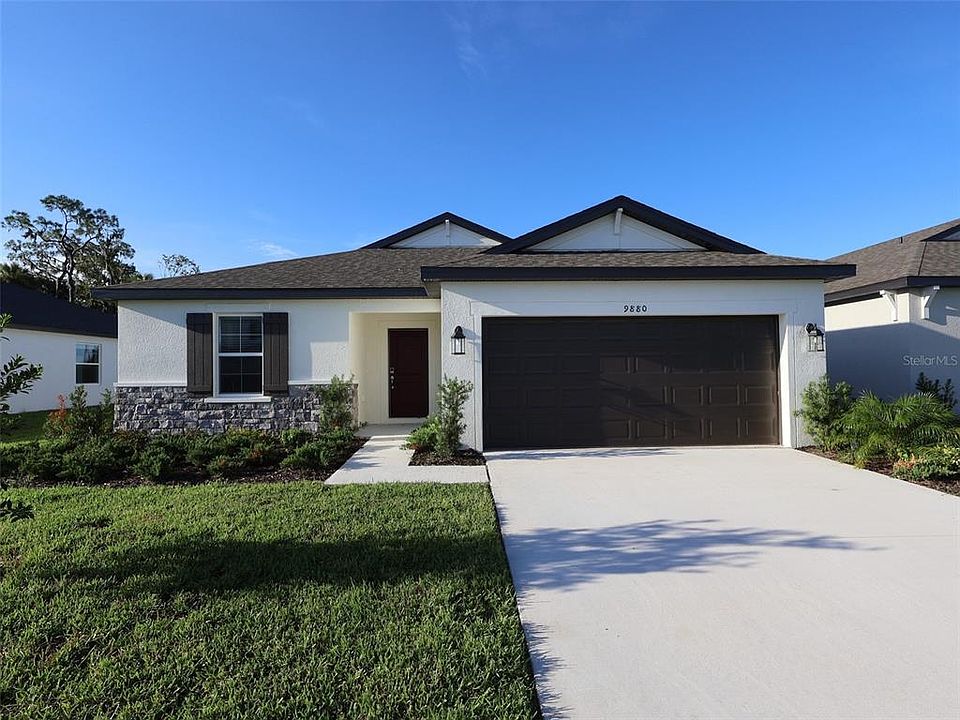 One or more photo(s) has been virtually staged. ****SPECIAL FINANCING AVAILABLE FOR A LIMITED TIME ONLY FROM PREFERRED LENDER. RESTRICTIONS APPLY, FOR QUALIFIED BUYERS, SUBJECT TO APPLICABLE TERMS AND CONDITIONS. SUBJECT TO CHANGE WITHOUT NOTICE**** Welcome home to the Palisades, Featuring three bedrooms, two bathrooms, a two-car garage and lush, easy-to-maintain landscaping that welcomes you into the home. As you walk in, a bonus room sits immediately off to the side. Continuing into the home, you’ll head into a massive combination kitchen, dining and great room. This large space extends almost the length of the house and opens up to a sliding glass door that leads out to the lanai. The kitchen features an oversized island and double-basin sink. The dining area is perfect for a medium-sized table, and flows seamlessly into the great room, where you can relax after the day or use the ample space to entertain guests. On the opposite side of the home sits the owner's suite with a huge walk-in closet. Two more bedrooms share this side of the home, and there is a full bathroom in between them. A utility room opens out to the two-car garage. The Palisades is the perfect choice for anyone looking for multiple bedrooms and spacious living areas.