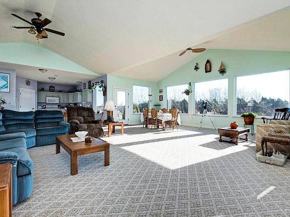 A MUST SEE! This custom built home features a spectacular view with large windows, with over 2500 square foot on one level, this 3 bedroom, 2.5 bath, 2 car oversize garage has much to offer. Located on 10 acres with a clear view of the stocked 1.5 acre lake. The large kitchen offers lots of natural light with ceramic glass top stove and large walk-in pantry. The master suite features a large master bath and over-sized master closet with natural light. Detached 29x29 detached workshop offers nearly 1800 square foot of climate controlled storage and man-cave. It even has its own bathroom including a shower. RV parking pad with power and sewer connection. This home offers many features not found in typical homes and all this just 15 minutes from Springfield