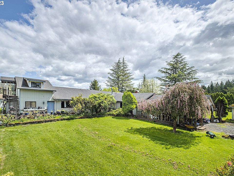 Extremely desirable Helvetia location on a peaceful road less than 10 minutes to HWY 26! 3.66 flat acres, this home sits in a beautiful setting. The property features a two story pole barn with attached lean-to, additional shed with attached lean-tos, greenhouse and plenty of space to optimize for your outdoor hobbies. Bring your imagination for a considerable home remodel with the unique spaces the home offers or use the acreage to build your dream home! In addition to the 3 bedrooms, 2 1/2 bathrooms, this one story home features two attached shops - one used to be a trophy shop, two laundry rooms, an open kitchen with large island and living room with large front windows. You'll find ample storage and flex space throughout the home to utilize, as well as an exterior upstairs space that could be made into an office, art room, bonus space or storage space. Tons of storage inside the home and in the outbuildings. The property is in a gorgeous location with many million dollar homes in the area - this is an opportunity to grasp!