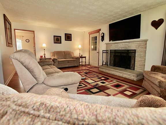 Expansive nearly 3/4 acre lot! The feel of the country, right in the city! This ranch-style home boasts hardwood flooring, 3 bedrooms, full bath, well-lit living room with large picture window, garage access, and a cozy stone hearth with log woodburning fireplace. The kitchen features abundant cabinets, ample counter space, and includes appliances. A full basement offers four spacious areas for potential finishing. Laundry is currently in a bedroom but can be relocated back to the basement. Oversized 2 car garage with workshop style area and newer opener that can be controlled via phone! Enjoy a smaller enclosed porch, sizable deck, and fenced, huge backyard. There is public water in the home, and a well available for exterior use. Endless possibilities! Sold As Is.