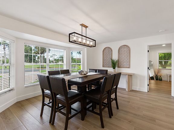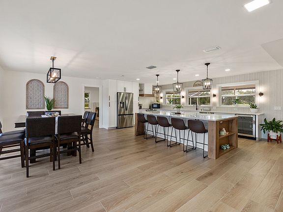 Stunning newly renovated 3bed/2bath ranch home just completed in the highly sought after Spanish Wells community. Prime location being close to shopping, high end restaurants and just a few minute drive to the gorgeous Barefoot Beach. Elevated with modern style and high end designer finishes throughout, this one truly stands out among the rest. The kitchen offers a huge eat-in quartz island, tons of cabinet space, a contemporary backsplash and stainless steel appliances. Excellent open concept design featuring a massive dining room and table that will comfortably seat 8. Large primary bedroom with patio access, walk-in closet w/tons of storage space, ensuite bath w/double vanity and large walk in shower. Spacious living room w/linear fireplace and huge TV. Secondary bathroom features beautiful custom tilework, separate shower and tub with a unique wall hung toilet and pool access. Large pool w/screen enclosure. Home is fully furnished with all brand new custom furniture.