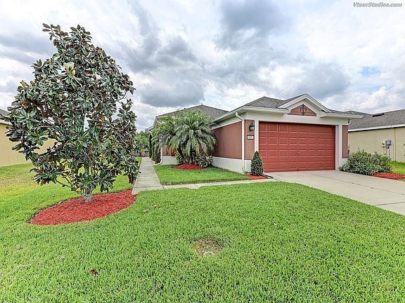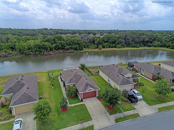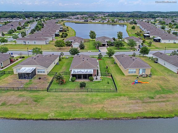 Paradise Found: Look no further and call this one HOME. Simply one of the nicest locations and views in Harrison Ranch. Start with a pristine lot, backing to a peaceful water view AND a conservation area, so there are no houses behind. Like to entertain outside? You have not only a 12x22 Florida Room, but an outdoor concrete and paver brick patio area. The Florida Room is completely enclosed with Vinyl Sliders. The entire back yard is fenced, but does not obstruct your view. Inside, you'll find attractive tile floors throughout. Patio doors open from the Living Room to the Florida Room, all with a view. The Open Floor Plan features a Breakfast Bar adjoining the kitchen. The kitchen is spacious enough for a table and chairs, and offers plenty of counter space. Master Bedroom is on the rear of the home and also takes advantage of the water views. This home features a split bedroom plan, so the 2nd and 3rd bedrooms are at the opposite end. Inside Utility Room with washer and dryer are an extra convenience. Mature Landscaping includes a beautiful Magnolia Tree in the front. Also included are hurricane shutters and an irrigation system that uses recycled water. Harrison Ranch features a 24-hour gym, heated junior olympic sized pool, and over 5 miles of nature trails. It's just minutes to shopping and restaurants. Currently the lowest priced Single Family Home in Harrison Ranch, this one will not last!