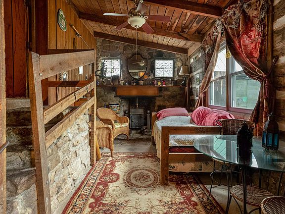 PRIVATE, SERENE GETAWAY! Welcome to this beautiful log cabin on "Frenchman's Pond"! This 3 bedroom 2 bath just under 2000 square foot home in Fort Valley is nestled away on roughly 6.05 acres with an additional large barn and was an active short-term rental until 2020. Outside you will find a gorgeous spring-fed pond with a bench & canoe to view the abundant wildlife, such as wild geese and turtles. The expansive open yard and large firepit allow for ample room to entertain. Inside you will find custom stone floors, original log walls, a quaint country kitchen and large family room with pueblo-style wood burning fireplace in the corner. The owners has completed many upgrades since 2004 including: majority of electric and plumbing was redone in 2004, added propane heaters and baseboard electric, upgraded 100 amp electric service, shingle roof & rolled rubber roof replaced around 2010. Wood burning fireplace and stove chimney's are functional and have been relined. In December 2021, Septic was inspected and pumped, well was inspected, and termite inspection and treatment was completed. This home is to be conveyed fully furnished minus several personal items. Don't miss your chance to own your private getaway today! Owner
