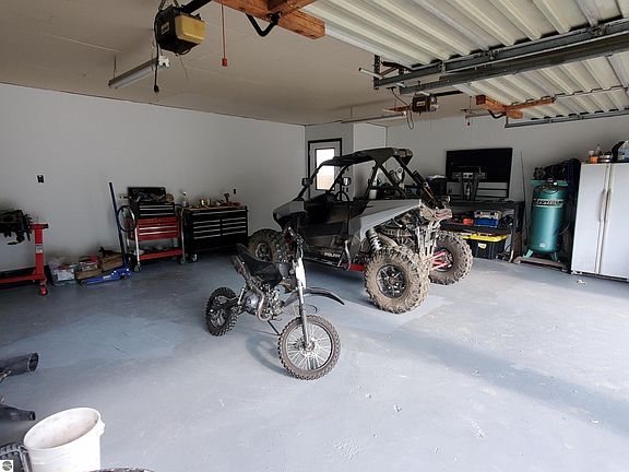 - Parking features: Attached, Garage Door Opener, Heated Garage, Concrete Floors, Concrete, Gravel