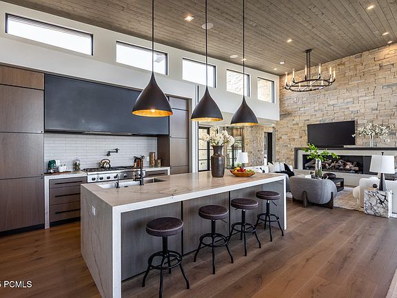 Situated on a serene 1.19-acre lot within the private gates of Tuhaye, this stunning estate offers breathtaking golf course and Uinta Mountain views. Thoughtfully designed with an open floor plan, this home seamlessly blends luxury and comfort, perfect for entertaining. The chef's kitchen features top-of-the-line Thermador appliances, including a 30'' double oven, 48''gas range, and an under-counter wine reserve. The main-level primary suite is a private retreat with a spa-like bath, soaking tub, walk-in shower, dual vanities, and a spacious closet with custom built-ins. Also on the main level: a dedicated office, laundry room, and access to the oversized three-car garage. The lower level is an entertainer's dream with a stylish wet bar, spacious family room, and fireplace-perfect for gatherings. Three additional bedroom suites, an exercise room, and a second laundry room provide comfort and convenience for guests. Step outside to the covered back patio, where a private hot tub awaits, surrounded by stunning mountain vistas. Premium designer finishes throughout elevate this home to true luxury. A Full Talisker Club Membership is included with purchase.