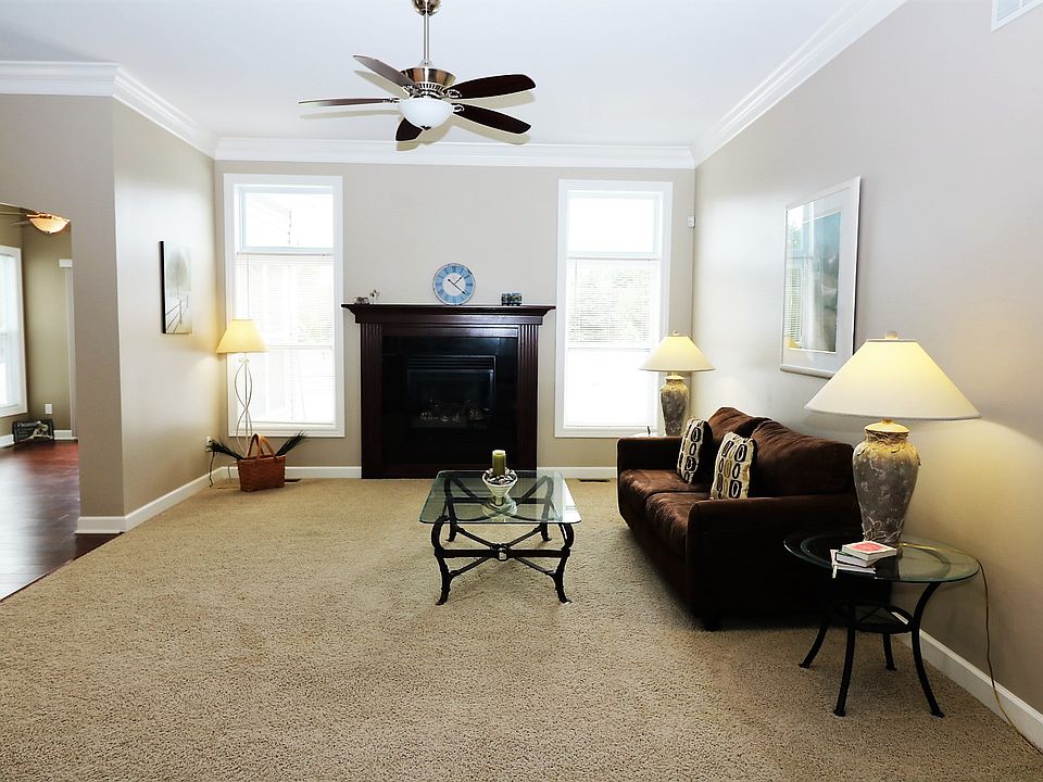 2012 new construction w/ extra perks. Former builder model home. Hardly lived in! Open floor plan features kitchen w/ new SS fridge, granite counters, tile backsplash. Spacious living rm w/ gas fireplace adjoins sunroom/din rm. Spa like bathroom in master suite. Private resort setting in the backyard patio w/gas heated in ground saltwater spa pool/jacuzzi tub & privacy fence. Full Basement.