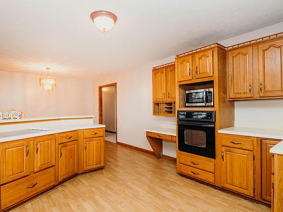 Gorgeous views, privacy, and a homestead that's already been started for you! This 4 bedroom 3 bath home offers 2 master suites, a cozy fireplace in the living room and a nice open inviting kitchen/dining room. Enjoy beautiful views from everywhere on the property. There is a cellar/storm shelter, large garden, multiple outbuildings, clothes line, and outdoor wood burning furnace all on 5 acres. Home has been recently remodeled, with new floors and paint. Shop is heated, cooled and plumbed and even has an indoor basketball goal! Don't miss this home, its sure to go quickly! Home will sell as is with exception to mortgage required repairs