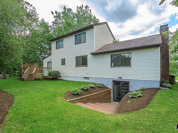 Nestled on 2 acres with approximately 250 ft. setback! * Enjoy views of your private koi-stocked ¼ acre pond from the rear deck! * Huge great room w/gas Fireplace (converted from wood burning), formal dining room featuring gleaming hardwood floors * Custom wood blinds throughout main level * The large updated eat-in ceramic kitchen is decked out w/granite countertops, breakfast bar, extra table seating area & premium stainless appliances * Kitchen flows thru to the vaulted family room with 2 skylights overlooking the rear deck * The deck has access to a 45 ft. long fenced dog run * In 2016 the master bath was updated w/granite tops and new ceramic floors * Powder room on main level granite added in 2016. New windows and roof approx. 2008. Gigantic finished LL walk-out adds 900+ sq.ft. of entertaining space * There are 2 amazing out buildings - a 2-car garage w/loft storage and stairway access with electrical service; also an additional 24x16 building features a single car overhead door & also has a loft with convenient stairway plus electric service * Pond includes an aeration system * This home is beautifully maintained throughout!