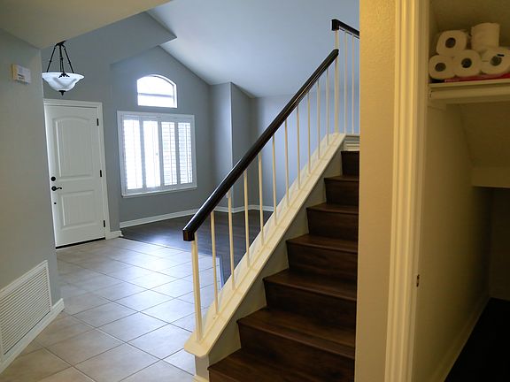 Located in one of the most desirable communities in Moreno Valley, Hidden Springs. This community offers LOW TAXES and NO HOA. This beautiful home offers 4 bedrooms and 3 bathrooms and best of all, one bedroom and full bath located downstairs. From the moment you enter the front door, you will be greeted with an inviting living room complete with Pergo flooring and a high ceiling. Fully remodeled chefs kitchen features: beautiful shaker cabinets with modern satin nickel hardware, extra cabinets were added for a huge 4 bay wide pantry. Large Calacatta look quartz countertop with peninsula, custom beveled concrete subway tile backsplash ,deep stainless sink with restaurant style coiled pull out faucet and matching 3 piece premium Samsung stainless appliance set includes chefs range with convection, over the range venting microwave, and dishwasher. Crown Molding has been added throughout the home. All bathrooms have been updated and Master bath has been fully remodeled with huge custom vanity with new cabinets, modern satin nickel hardware, double sink with quartz counter top. Full custom walk in shower with large frameless glass shower enclosure and large rain shower head. The backyard features trees and grass, a large wood patio that offers lots of shade, views of the surrounding greener. Home backs up to the greenbelt which is a nature preserve with hiking and equestrian trails. Located north of 60 freeway, near shopping centers and schools. Come and see today. Wont Last!