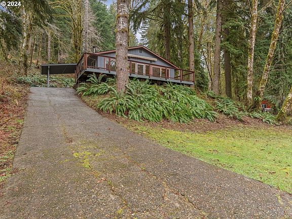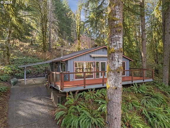 Welcome to the serene Fishhawk Lake! Tucked among lofty trees, this private home could be your next life adventure! A wall of windows facing the lake allows light to stream in & fill the home with sunshine. Bamboo flooring connects each room, creating a consistent look & feel. The kitchen features stainless steel appliances & flexible dining space. Light a fire in the woodstove to keep cozy & warm throughout the home! The main bedroom has its own bathroom & door to the private backyard patio, which stakes claim in the forest for intimate moments & serves as a convenient dog run. The third bedroom has a Murphy bed providing flexible space + a door to the side deck leading to a soothing private hot tub & shed. Convenient laundry closet off living room. The 35x12 ft. Trex deck with an awning & view of the lake is a perfect place to entertain guests, wind down & watch the wildlife & lake boats float by. The mini-split system heats & cools on demand. The carport protects vehicles from the elements while upgraded insulation & mold protection in the attic & crawlspace ensure comfort & peace of mind. The updated electrical panel with a surge protector & the generator keep this home running under any conditions. Over $80,000 of improvements have made this home move-in ready for you! The expansive lake beckons boating, fishing & swimming. Play on the sandy beach & playground or relax at water's edge! Watch thousands of salmon return upstream at the new state-of-the-art fish ladder during their annual run! Escape to Oregon's most beautiful lake community for rest & recreation or make it your full-time home! Neighbors love to gather on the island lawn for summer parties & 4th of July celebrations + play pickleball, tennis & bunco. Pick your plot & your vegetables at the community garden! High-speed internet is available & more internet providers are anticipated. Check the 3-D tour! This is the peace and solitude you've dreamed of!