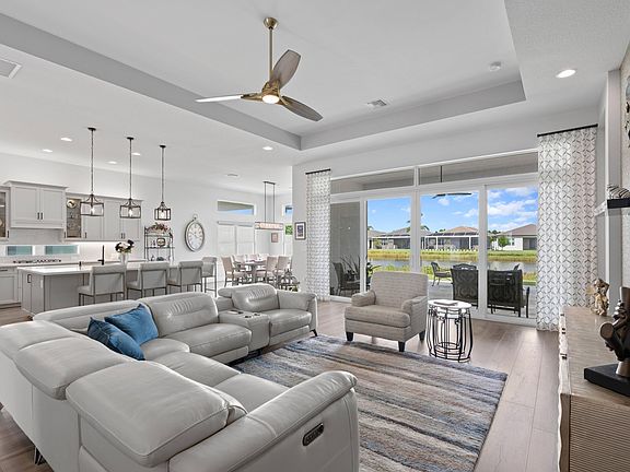 SHOWS LIKE A MODEL HOME! THIS EXPANDED JADE Model IS PURE LUXURY and ELEGANCE-FEATURING 2795 SQUARE FEET of OPEN CONCEPT living Using HIGH QUALITY FINISHES and UPGRADES THROUGHOUT. 3 Bedroom 31/2 Bathroom 3 CAR GARAGE SITTING on a PREMIUM LAKE LOT, SPACIOUS Great Room and SEPARATE Den/Home Office - Panoramic WATER VIEWS w/ROOM FOR A POOL! Fully UPGRADED QUARTZ Kitchen, ALL NATURAL GAS-UPGRADED Appliances, TRANSIENT WINDOWS, EXTRA LARGE Center Island that's modern and multi-functional, Beautiful MASTER SUITE includes his/hers built-in closets-Master bath offers HIGH-END Cabinetry with Quartz Countertops- EXTRA Spacious Walk-In Shower-GENERAC WHOLE HOUSE GENERATOR-DINING ROOM is EXPANDED FOR EVEN MORE SPLACE -ALL IMPACT WINDOWS/DOORS/SLIDERS-SOLID INTERIOR DOORS-IMMED OCCUPANCY- Double-Entry Impact Etched Glass-Raised FINISHED TRAVERTINE PATIO w/Motorized bug SCREEN, Custom laminate Plank Flooring adds Elegance to Every room, EPOXY FLOORING in Garage, GARAGE IS EXTENDED ADDING MORE SPACE, Hurricane Impact throughout, UPGRADED A/C UNIT w/EXTENDED WARRANTY-Unique decorator lighting and dozens of high hats plus so much more! A True Turn-Key home with a Premium Elevation Lot and a Must see at the beautiful Valencia Sound Community. The community of Valencia Sound features a Five Star Clubhouse, a full-service restaurant, resort style pool, gym, tennis, pickle ball courts and so much more!