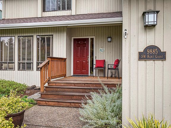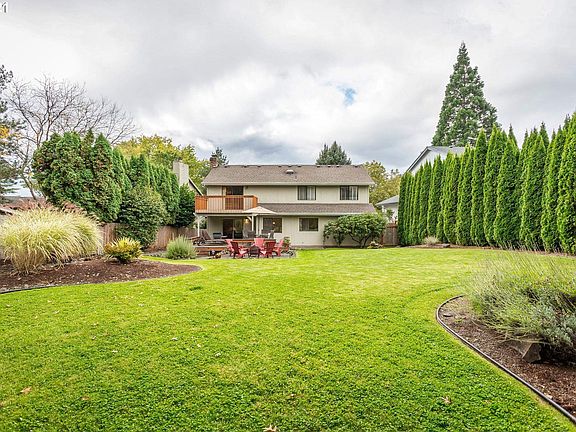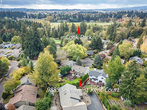 This NW contemporary style home is special. Wonderful cul-de-sac location with spectacular hard to come by private 1/4 acre lot. Living room with beamed ceilings and nearby formal dining. Kitchen w/S/S appliances & eating nook. Family room with floor to ceiling stone fireplace. Master w/bath, slider to private deck. Walk to Cook Park, enjoy special nearby events such as the 4th of July show & the local hot air balloon festival. Tigard High, Bridgeport Village and restaurants are near by.
